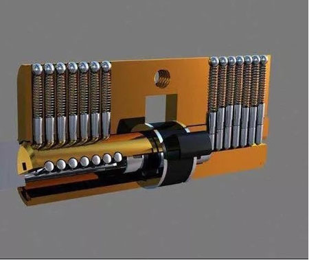 鎖具的互開率是如何確定的呢?可以先看一下最常見的彈子鎖的結(jié)構(gòu):