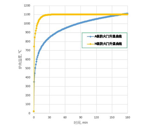 由下圖可知,H級(jí)防火門(mén)耐火試驗(yàn)時(shí)的升溫曲線是碳?xì)渖郎厍,其受熱沖擊高于A級(jí)。
